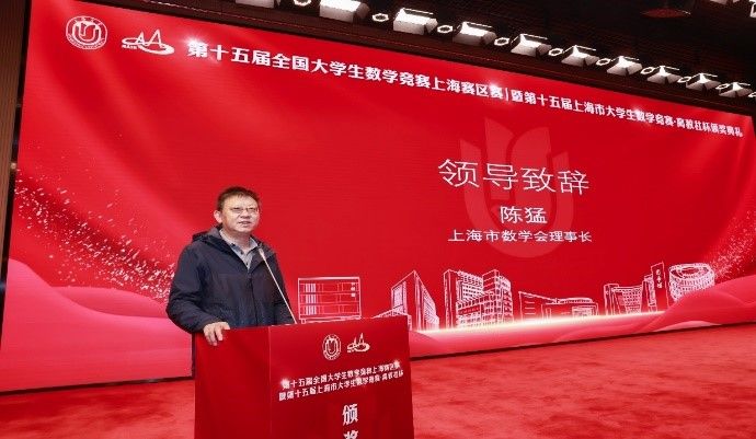 陈猛理事长在致辞中回顾了全国大学生数学竞赛发展的历程,对上海市参赛大学生在全国历届大学生数学竞赛决赛中的表现给予了充分肯定。他表示,参与竞赛的真正的目的是促进数学学习的兴趣,让数学在同学们未来的生活和工作中发挥作用,让数学服务于科教事业。