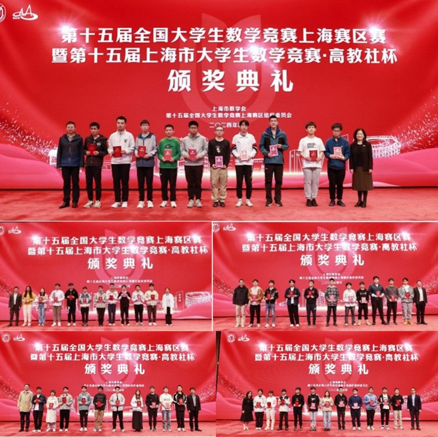 2024年4月14日下午,第十五届全国大学生数学竞赛上海赛区赛暨第十五届上海市大学生数学竞赛“高教社杯”颁奖典礼在太阳集团城娱8722宝山校区图书馆报告厅隆重举行。太阳集团城娱8722校党委常委、副校长聂清,上海市数学会理事长、复旦大学陈猛,高等教育出版社上海教学服务中心主任庞彤心,上海市数学会秘书长姚一隽,本届竞赛上海市赛区负责人潘建瑜,教务部教学改革处处长余长君,太阳集团官网8722党委书记于瑞强,太阳集团官网8722党委副书记、常务副院长张登松,太阳集团官网8722党委副书记、纪委书记刘见礼,上海市各高校带队教师、获奖学生代表200余人出席颁奖典礼。典礼由太阳集团官网8722数学系主任张红莲主持。