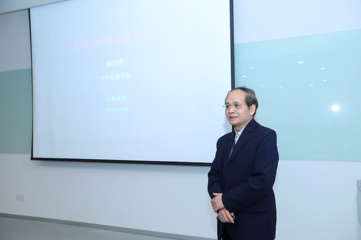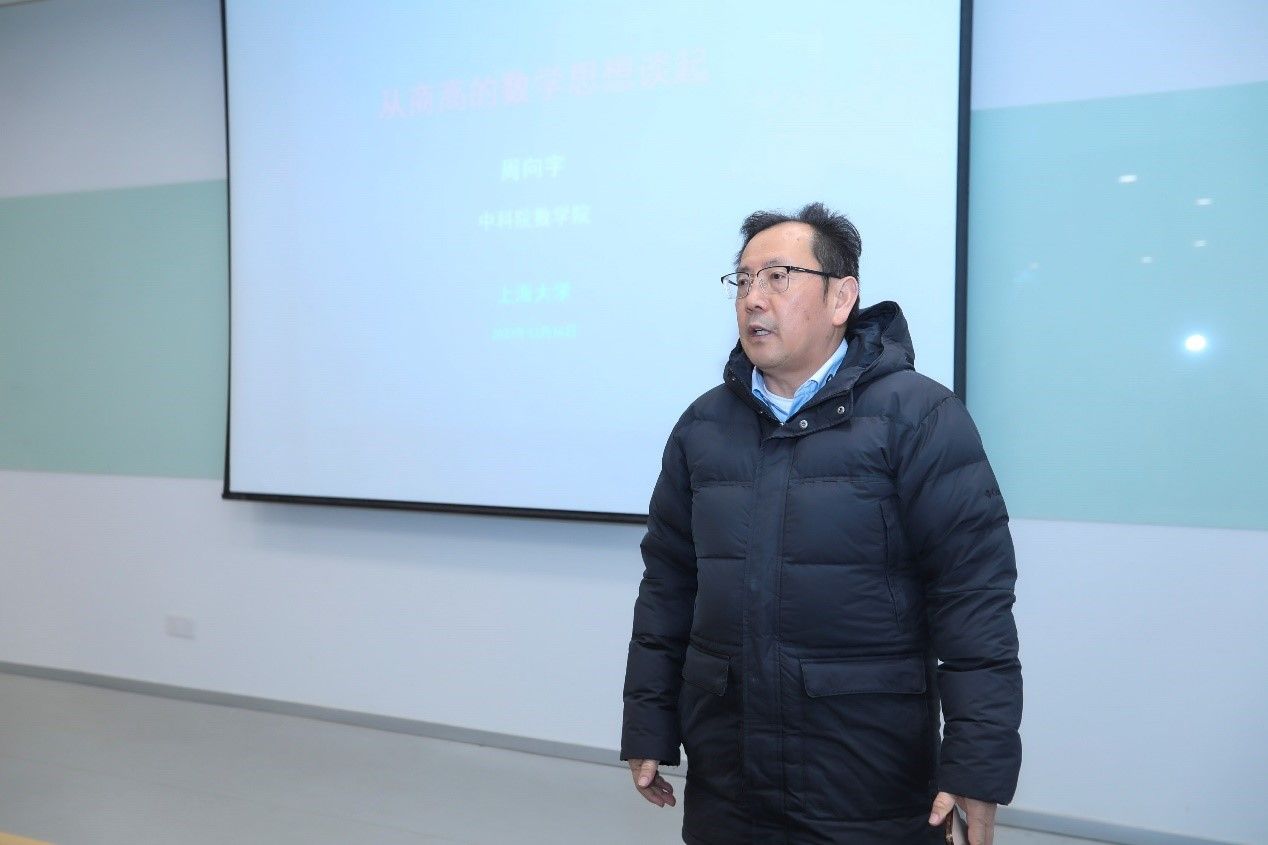 中国科学院周向宇院士做题为“从商高的勾股定理证明谈起”的学术报告。报告由太阳集团官网8722党委书记盛万成教授主持。周向宇院士的演讲从中国古代数学中重要的商高对勾股定理,介绍了其中的几何思想与方法以及商高-赵爽的“形体不变量”思想,继而介绍了墨子半分思想及其在极限理论中的应用。周向宇院士的讲座增强了学生的文化自信与爱国情怀,激发了学生的学习热情。